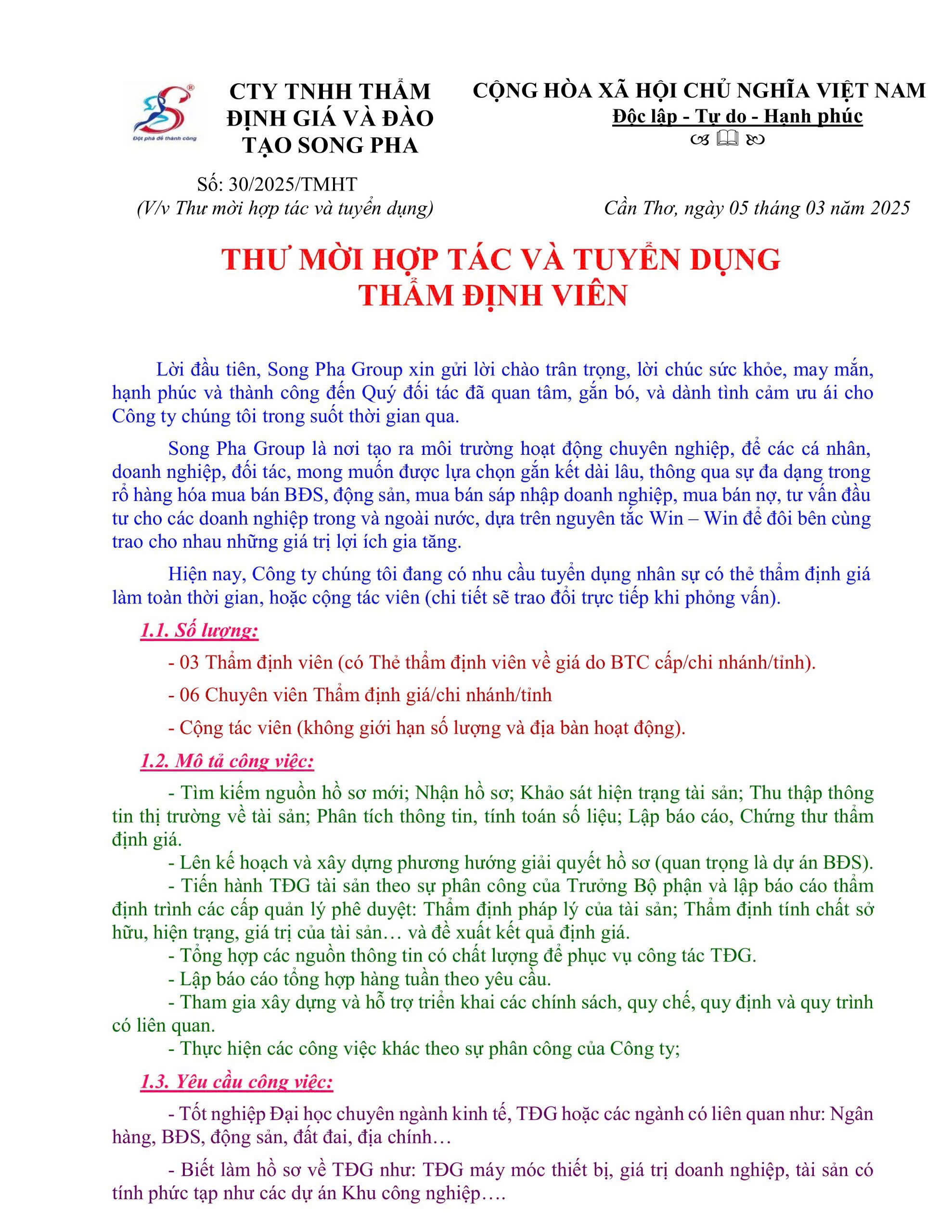 CƠ HỘI NGHỀ NGHIỆP TẠI SONG PHA GROUP